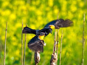 A Red-Winged Black Bird takes flight at Mill Creek Park in Dexter, MI
