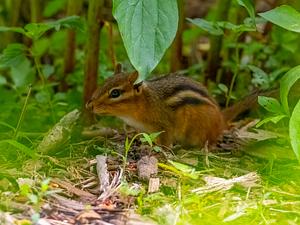 An intrepid chipmunk explores the underbrush at the Nichols Arboretum in Ann Arbor, MI.