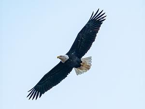 An adult bald eagle shows off their impressive wingspan. Taken at Watkins Lake State Park & County Preserve in Manchester, MI