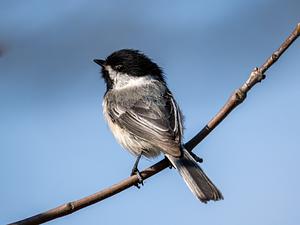 A Black-Capped Chickadee gives a warning glance over its feathery shoulder at Trinkle Marsh Preserve in Washtenaw County, MI