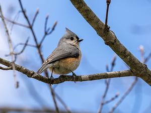 A Tufted Titmouse takes a breather on a branch at Gallup Park in Ann Arbor, MI