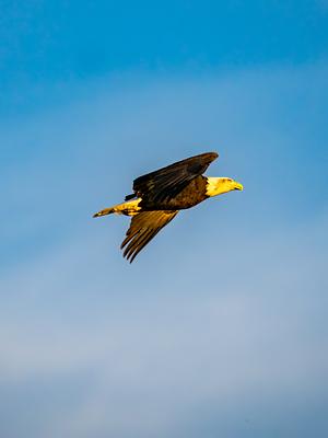 A bald eagle soars on a rising current of air at Watkins Lake State Park & County Preserve in Washtenaw County, MI