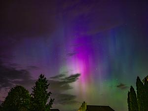 The aurora borealis peaking out behind cloud cover over Dexter, MI